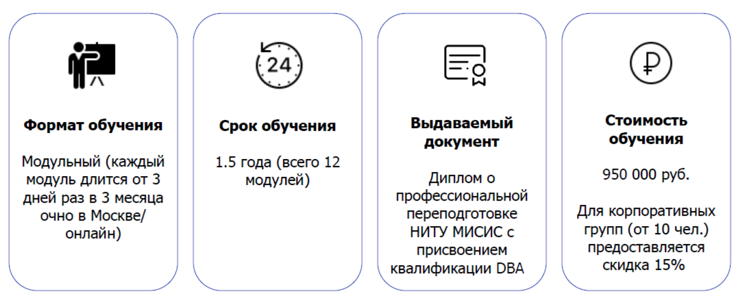 Подходит лидерам бизнеса, которые добились внушительных успехов в своей деятельности и готовы получить научно-практическую ступень собственного управленческого опыта, а также расширить свои знания и повысить квалификацию.