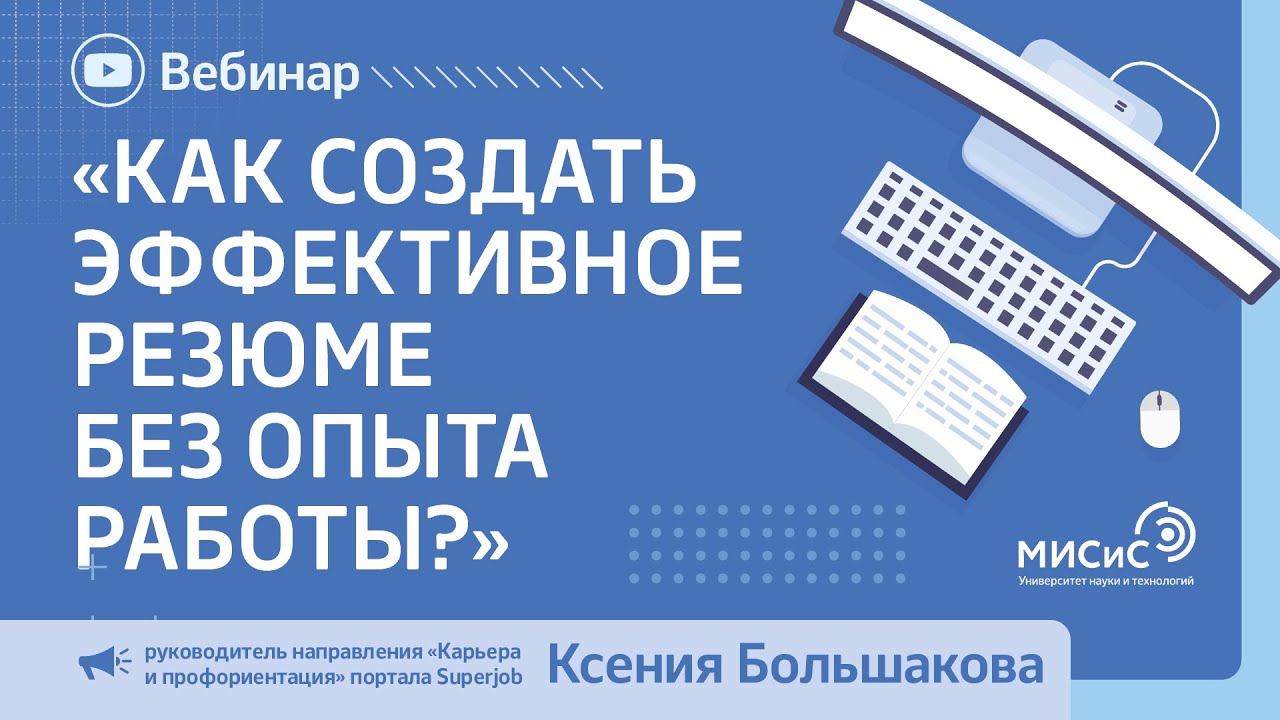 В рамках весенней ярмарки вакансий НИТУ МИСИС эксперт Superjob, кандидат психологических наук Артем Дорошин проведёт вебинар, посвященный составлению эффективного резюме.