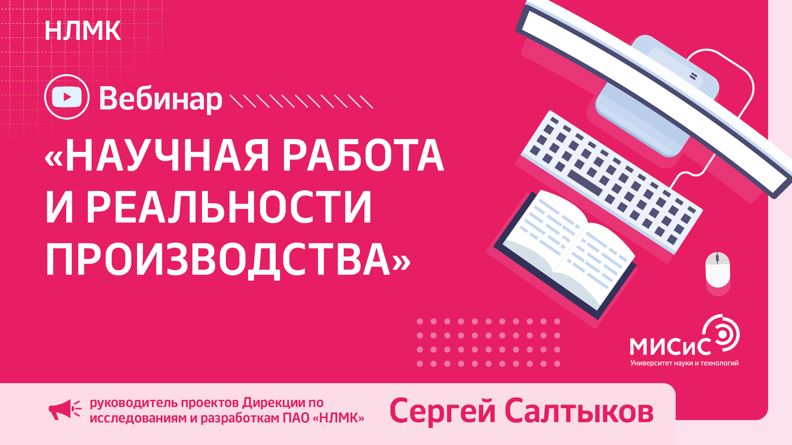 Салтыков Сергей Николаевич-руководитель проектов Дирекции по исследованиям и разработкам ПАО «НЛМК» расскажет о взаимосвязи научных исследований и реального производства, о тенденции интеграции современной науки в промышленность, сделает акцент на прикладном аспекте работы дипломников и аспирантов.