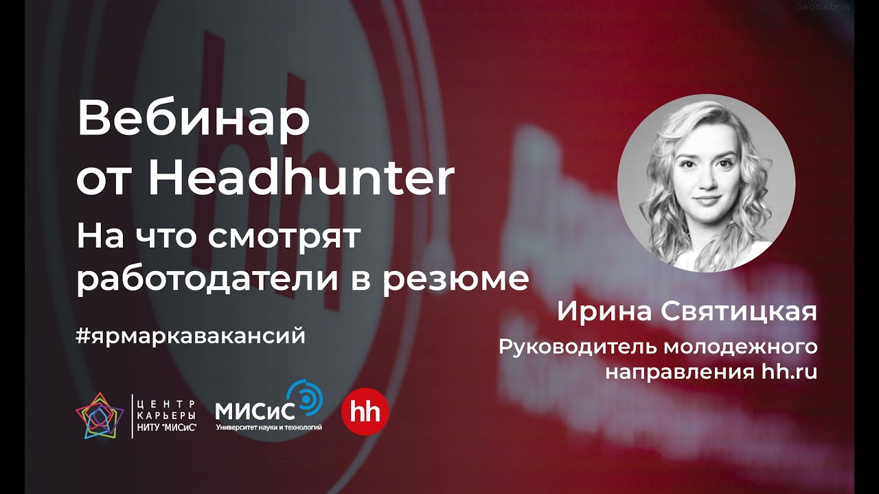 Руководитель молодёжного направления известного портала Hh.ru Ирина Святицкая проведёт вебинар для студентов и выпускников НИТУ МИСИС, в котором рассмотрит волнующие молодых специалистов темы: