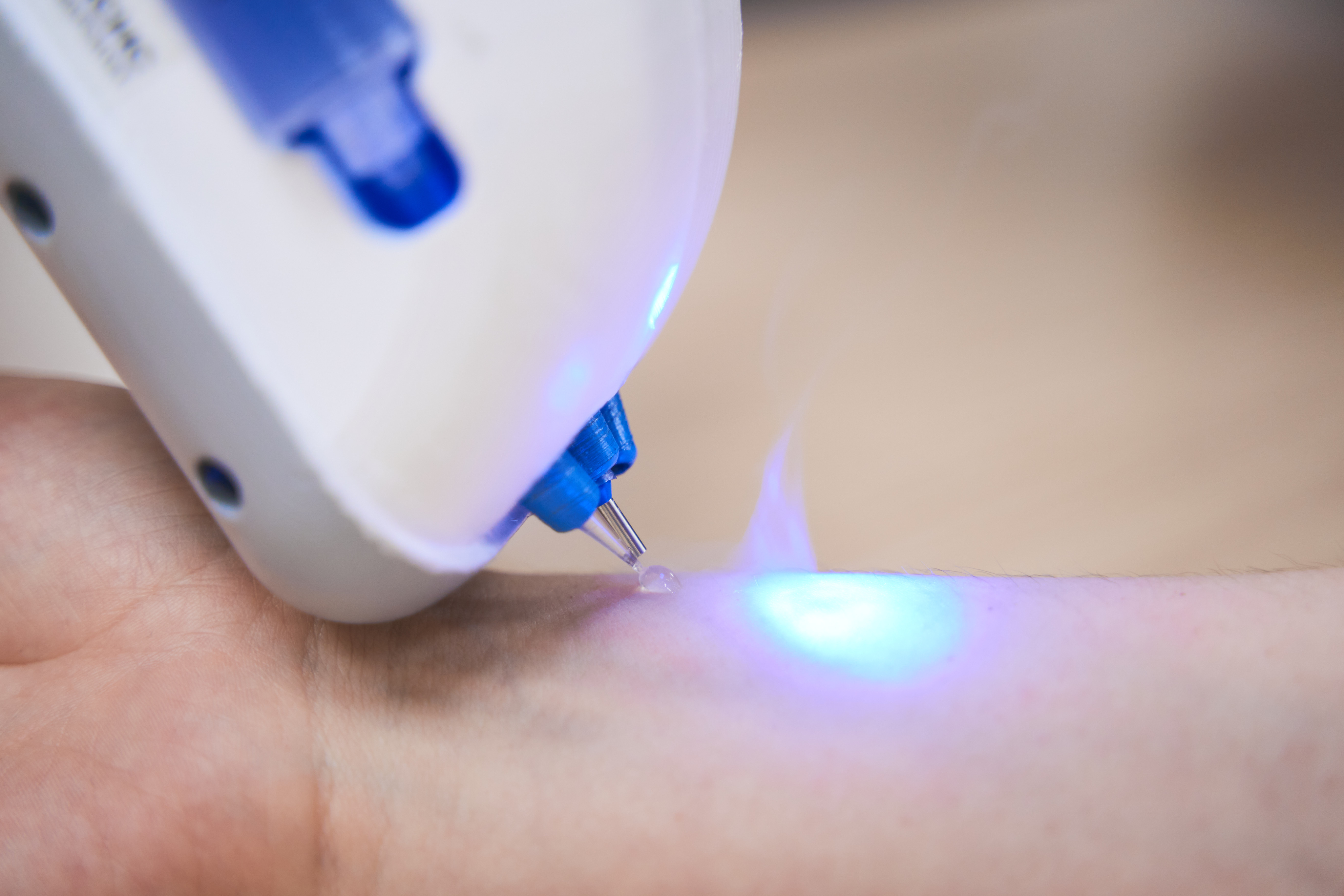 «Тканевой пистолет» предназначен для обработки раневых дефектов с целью ускорения регенеративных процессов при поверхностных ранениях различной степени тяжести. Устройство на основе оригинальной и запатентованной технологии «core-shell» возможно применять при лечении ожогов