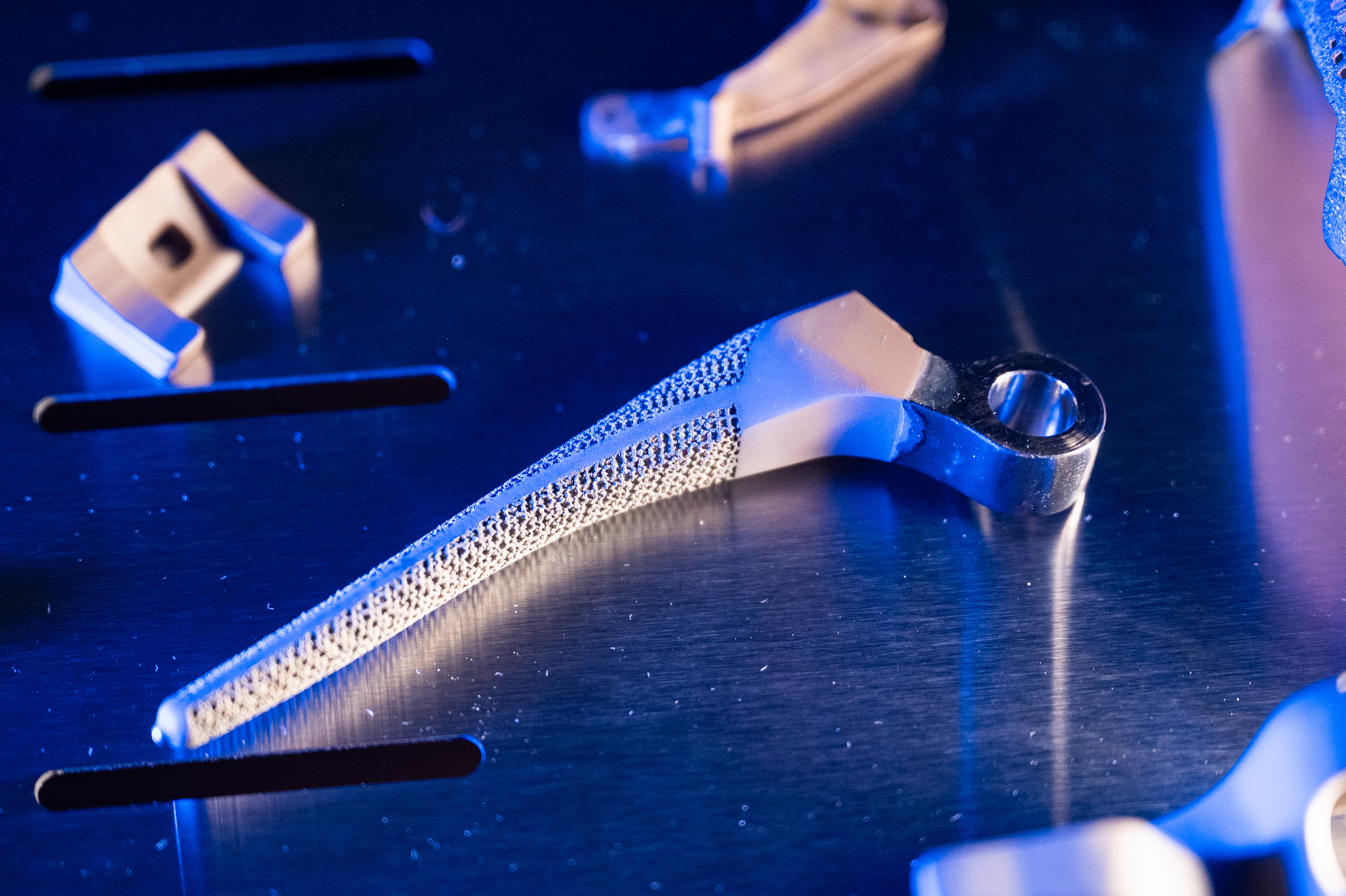 Технология адаптирована для обработки как массовых, так и индивидуальных 3D-печатных имплантов из различных сплавов, включая сложные пористые конструкции